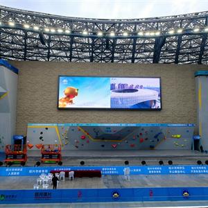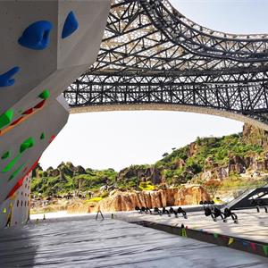 場地分為南北兩區(qū),南區(qū)為比賽場地,最上方是現(xiàn)場直播大屏,下面按國際標(biāo)準(zhǔn)打造的三個攀巖賽道,整體巖壁高16.5米,總寬度約68.5米,最大懸挑9米,坐南朝北,面向觀眾席一字排開。賽道由速度道、攀石道、難度道三部分構(gòu)成。巖壁朝北設(shè)置,可讓運(yùn)動員在比賽時背對陽光,避免因光線刺眼影響比賽。北區(qū)則是觀眾區(qū),賽時可容納觀眾2100人。