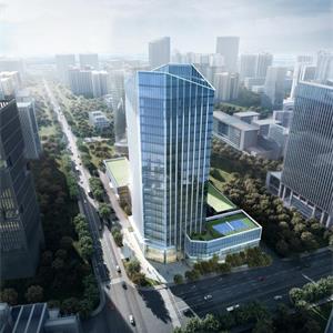 本項(xiàng)目位于浙江省杭州市,項(xiàng)目總用地面積21839㎡,總建筑面積69290㎡,地上建筑58404平方米,地下建筑10886平方米,容積率2.67,綠化率20%,建筑密度40%,建筑高度94米。